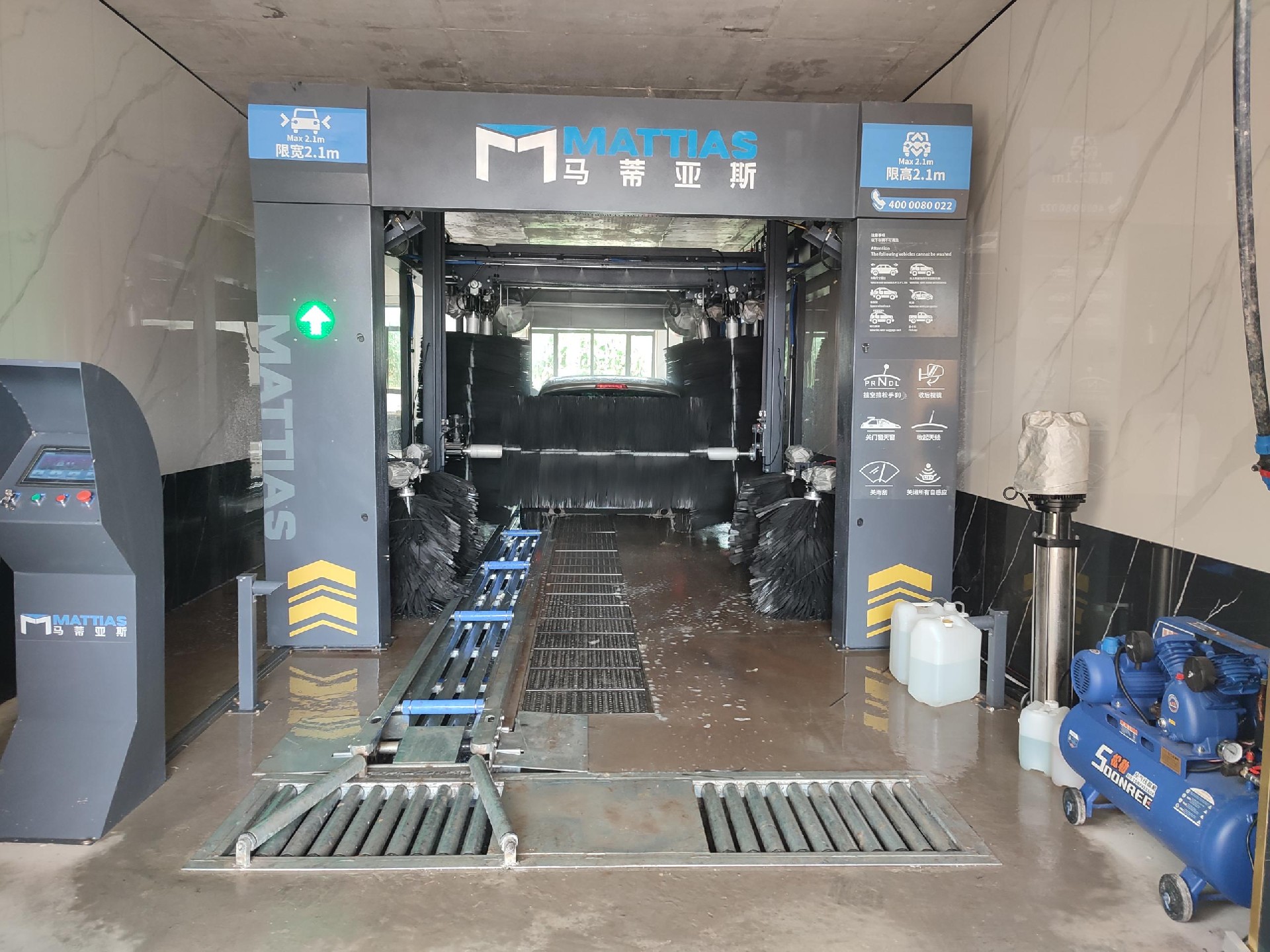 馬蒂亞斯隧道連續(xù)式電腦自動(dòng)洗車(chē)機(jī)適用用于對(duì)各種轎車(chē)及中小型面包車(chē)的外表進(jìn)行高壓水沖洗、洗車(chē)液稀釋、自動(dòng)刷洗、自動(dòng)蠟洗、自動(dòng)風(fēng)干和拋光一系列作業(yè)。