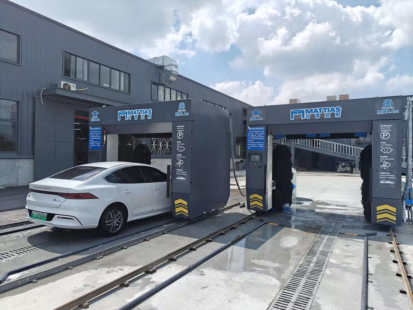 選擇自動(dòng)洗車程序,啟動(dòng)系統(tǒng),自動(dòng)完成洗車、漂洗、吹干等工作流程,最后實(shí)現(xiàn)快速高效的洗車效果。
